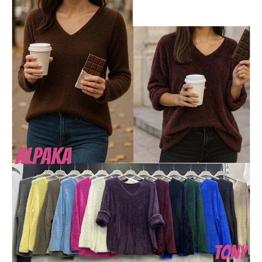Sweter damski z dekoltem w serek