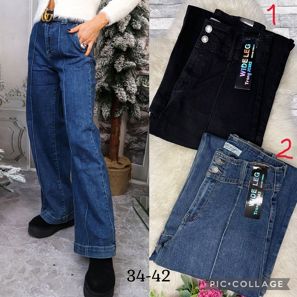 Jeansy szerokie nogawki 34-42