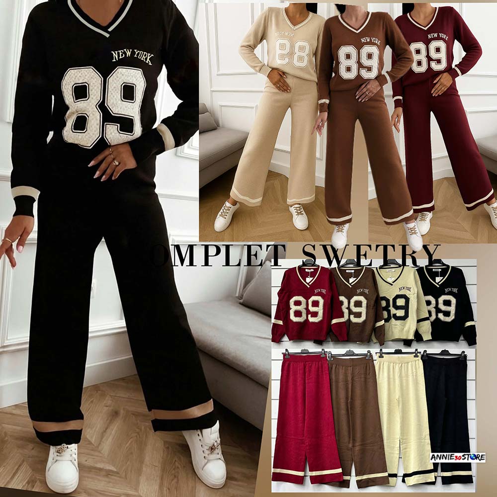 Komplet sweterkowy damski z dekoltem w serek