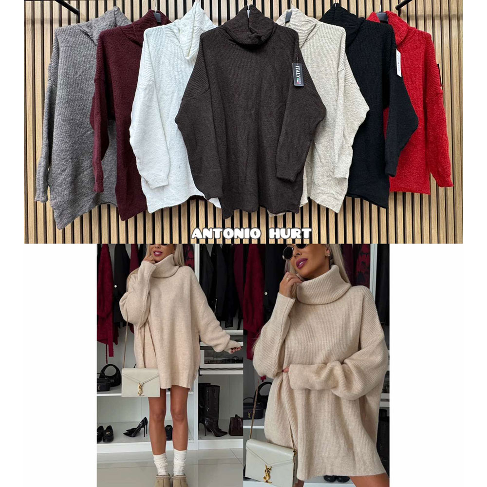 Tunika sweterkowa damska z golfem