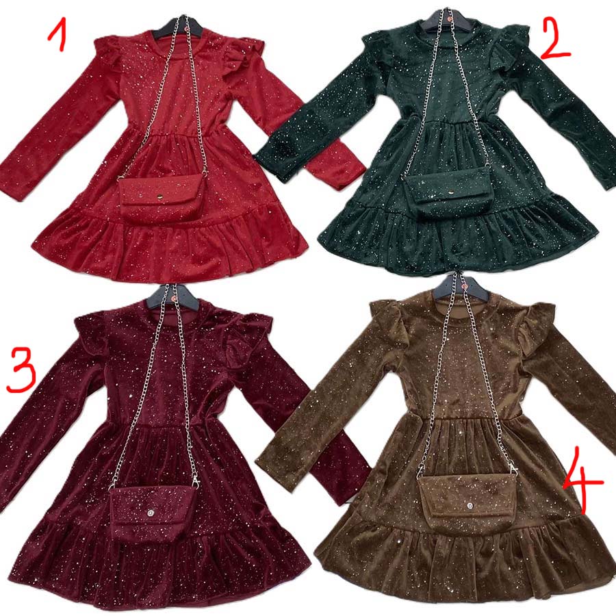 Sukienka welurowa dziewczęca z cekinami 4-14 lat