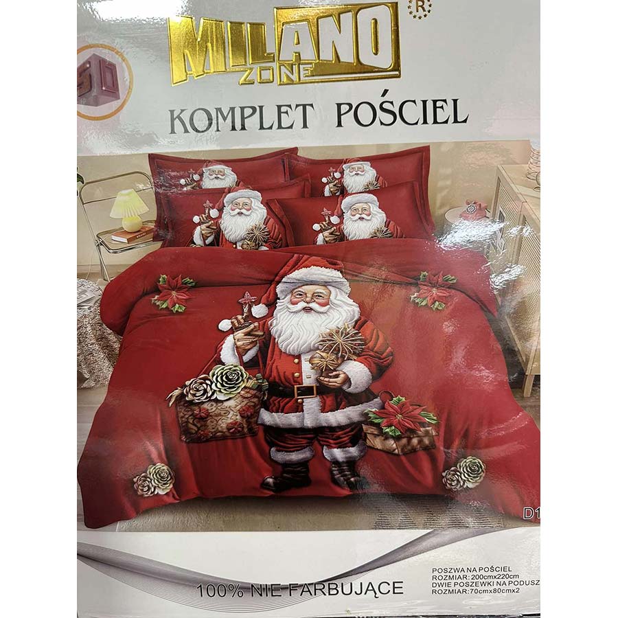 Komplet pościel świąteczny 100% NIE FARBUJĄCE - 3cz - 200cm x 220cm