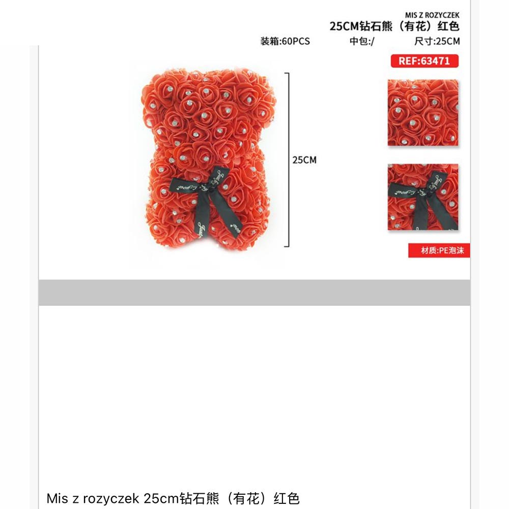 Prezent na walentynki - Miś z róż 25cm