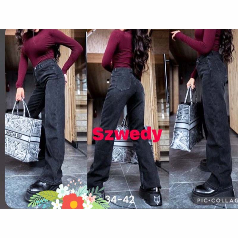 Jeansy szerokie nogawki 34-42