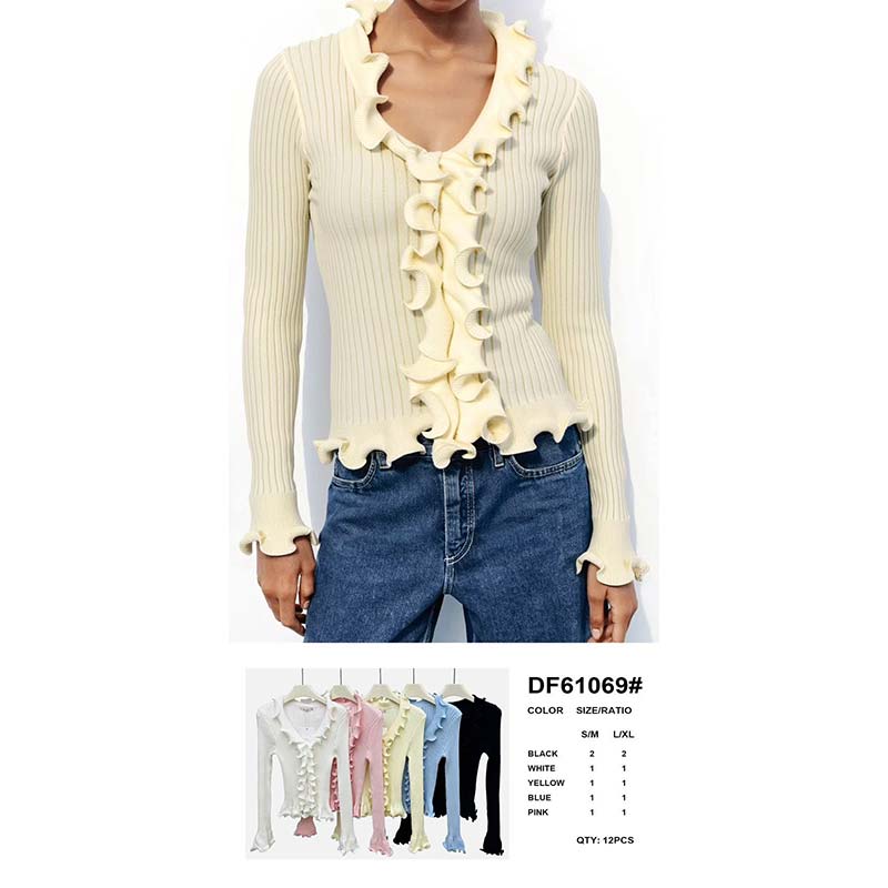 Cienki damski sweter z dekoltem w serek (S/M-L/XL)