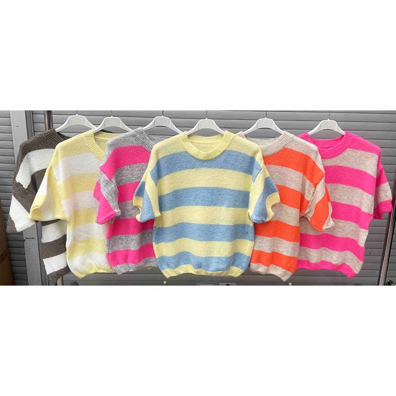 Sweter damski z krótkim rękawem w paski