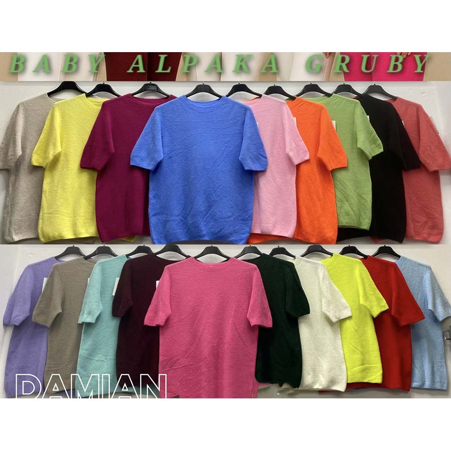 Sweter gruby damski z alpaki z krótkim rękawem