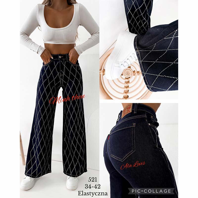 Jeansy szerokie nogawki 34-42
